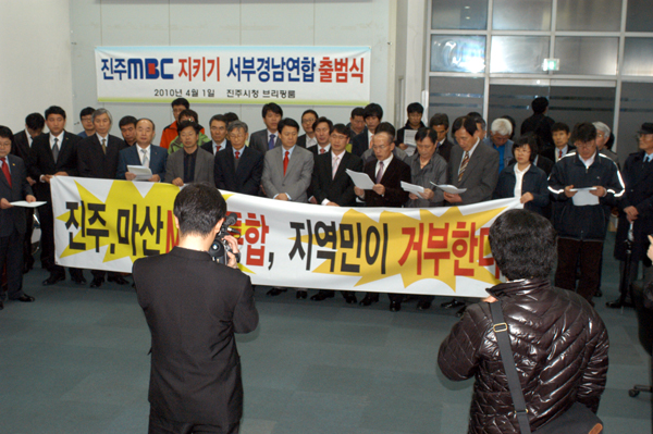 서부경남연합은 이날 출범선언문을 통해 "진주와 마산MBC의 통합은 반문화적, 반지역적, 반역사적 결정“이라며 "진주 MBC의 독립적이고 독자적인 생존과 성장·발전을 저해하는 어떤 획책도 반대한다"고 밝혔다.