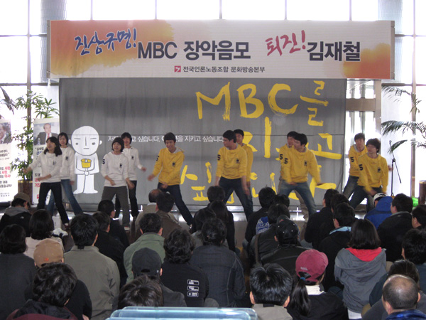 특히 김 사장은 8일 오후 6시20분쯤 회사에 들어왔다가 노조원 100여 명의 연좌농성에 직면했다. 노조원들은 사장실 앞에서 “김재철은 물러가라”며 농성을 벌였고, 김 사장은 7시50분쯤 안전관리요원들의 경호를 받고 가까스로 회사를 빠져나갔다.