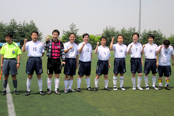 | ▲ 파이팅을 외치는 코리아타임스 선수들. | ||