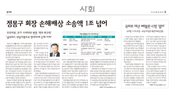 한겨레 지난 7일자 ‘정몽구 회장 손해배상 소송액 1조 넘어’(9면)라는 기사가 포털에서 누락되면서 논란이 일고 있다.