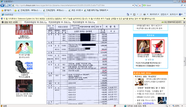 ▲ 스포츠조선은 노씨의 항의를 받고 사진을 내리면서 기사 하단에 당구장 표시로 ‘상기 기사에 게재됐던 사진 중 한장은 블로거 노태운 기자의 발가는대로에서 캡쳐한 관계로 삭제했습니다’고 덧붙였다. |