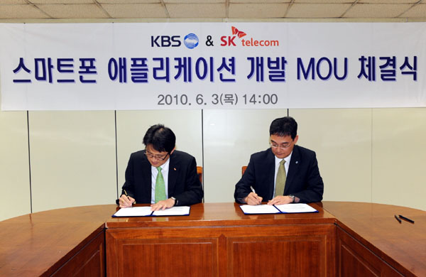 KBS는 3일 SK텔레콤과 T 스토어에서 서비스 가능한 안드로이드용 애플리케이션을 개발하기 위해 상호 협력한다는 양해각서(MOU)를 체결했다.