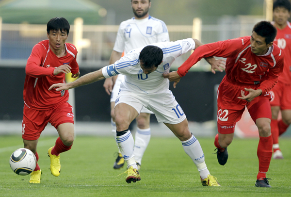 ▲ 그리스 축구대표팀이 지난달 26일(한국시간) 오스트리아에서 열린 북한 축구대표팀과의 친선경기에서 4골을 주고 받은 끝에 2대 2 무승부를 기록했다. (뉴시스) |
