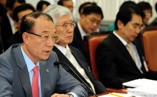 ▲ 최시중 방송통신위원장이 25일 오전 국회에서 열린 문화체육관광방송통신위원회 전체회의에 참석해 의원들의 질의에 답하고 있다.(뉴시스) |