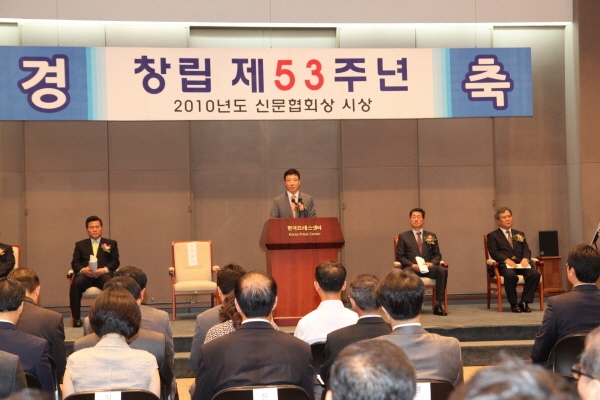 김재호 회장은 기념사에서 “신문이 다시 도약하고 독자들의 사랑을 받기 위해서는 신문 콘텐츠가 시장에서 제대로 평가받아야 한다”며 “협회는 ‘디지털 시대 뉴스콘텐츠 유료화 전략’연구 등을 바탕으로 신문 콘텐츠가 제 가치를 인정받을 수 있는 다양한 전략을 고민하겠다”고 밝혔다.
