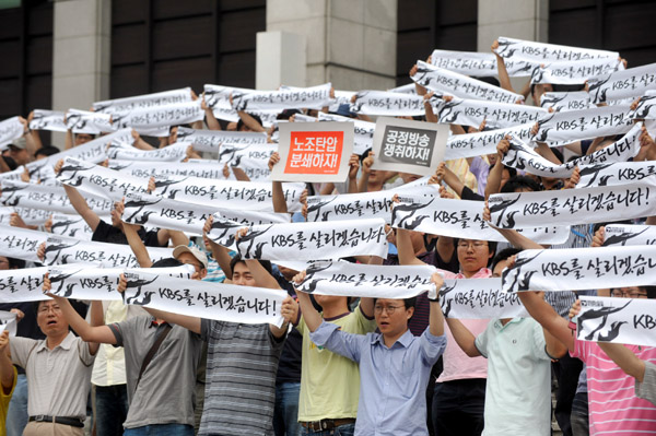 | ▲ 지난 1일 오전 서울 여의도 KBS 본관앞에서 KBS노조 총파업 출정식이 열렸다.(뉴시스) | ||
