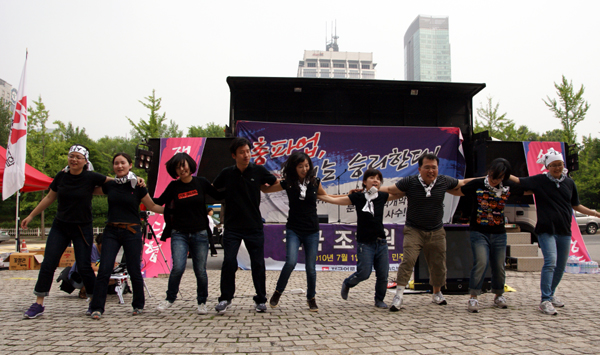 | ▲ KBS 새 노조 파업에서 조합원들의 열렬한 사랑을 받고 있는 노래패 ‘박대기와 발바닥’. (KBS 새 노조 제공) | ||