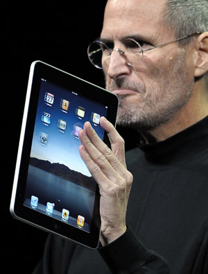 ▲ 지난 1월 27일(현지시간) 애플의 스티브 잡스 최고경영자(CEO)가 샌프란시스코 예르나부에나 센터에서 태블릿PC ‘아이패드’를 소개하고 있다. (신화/뉴시스) |