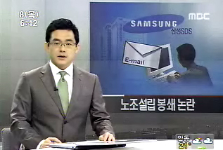 | ▲ MBC‘뉴스투데이’가 지난 8일 보도한 ‘삼성SDS 노조설립 봉쇄 논란’관련 화면. | ||