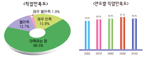 직업만족도는 지난해에 비해 다소 떨어졌다. 창립 45주년 여론조사에서는 만족 87.1%, 불만족 12.4%를 기록했다. 직업만족도는 4년 연속 증가세를 보이다 올해 감소세로 돌아섰다.