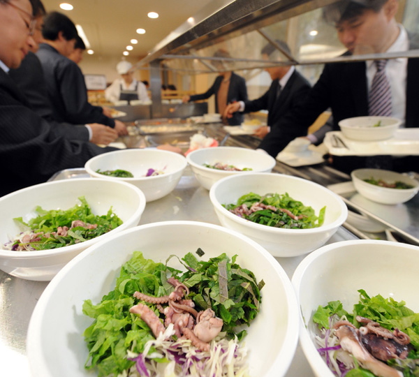 | ▲ 20일 오후 서울 서소문 서울시청 구내식당에서 열린 '낙지데이' 행사에서 직원들이 낙지 비빔밥으로 점심 식사 배식을 받고 있다. 낙지데이는 최근 낙지 먹물과 내장 유해성 발표 이후 낙지 소비 감소를 우려해 서울시가 마련한 행사로 서울시 직원들의 점심식사를 통해 '낙지 먹물과 내장만 빼면 낙지는 문제없이 먹을 수 있다'는 점을 홍보한다는 계획이다. (뉴시스=서울시 제공) | ||