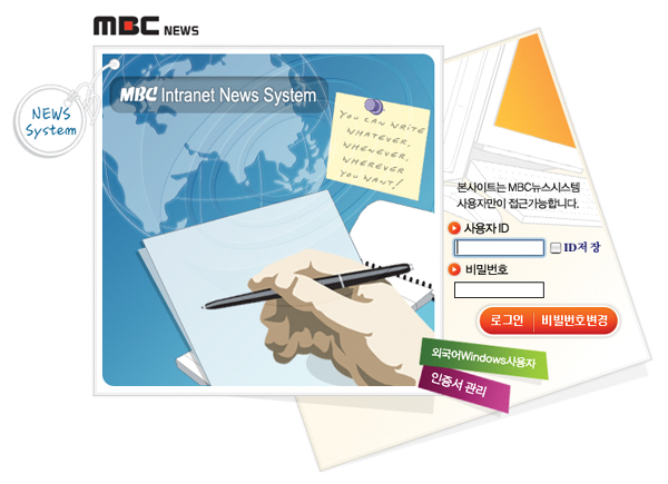 ▲ MBC 출신 삼성 직원이 2009년 5월부터 2010년 7월까지 1년2개월간 접속한 것으로 알려진 MBC 뉴스시스템. |