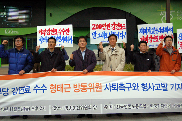 언론 3단체는 이어 “이처럼 막한 권한을 가진 고위 공직자로서 형 위원이 보인 형태는 참으로 개탄스럽다”며 “지난 10월 방통위 국정감사에서 드러난 형 위원의 행적을 보면, 재임기간 중 총 32회의 외부강연에 2천5백40만원에 달하는 거액의 강연료를 수수한 것으로 나타났다”고 말했다.