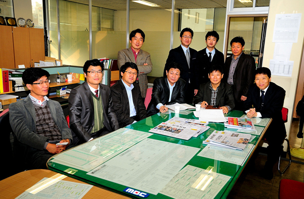 ▲ 뒷줄 왼쪽부터 신광하 차장, 김양훈 기자, 양현승 기자, 장용기 부장, 앞줄 왼쪽부터 박영훈 차장, 문연철 차장, 김윤 차장, 김선태 보도제작국장, 한승현 보도부장, 최진수 부장. |