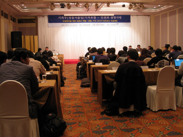 1섹션 ‘인권증진을 위한 언론의 역할’에서 발제자인 연합뉴스 한상용 기자는 “탐사보도 자체가 인권과 밀접한 관련이 있다”며 “한나라당 강용석 의원의 성희롱 발언과 정부의 민간인 사찰, 양천경찰서 고문 등에서 볼 수 있듯이 주변 상황이 인권과 항상 연계돼 있다”고 밝혔다.