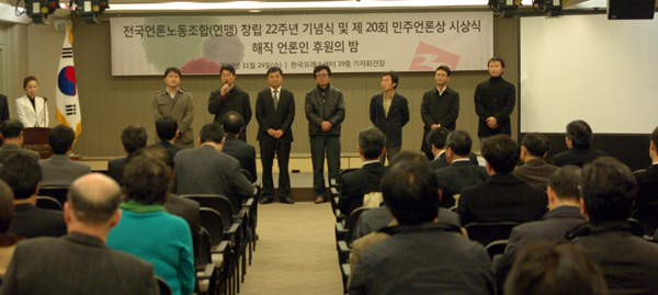 전국언론노동조합 창립 22주년 기념식 및 해직 언론인 후원의 밤 행사가 24일 오후 서울 중구 한국프레스센터 19층 기자회견장에서 열렸다.