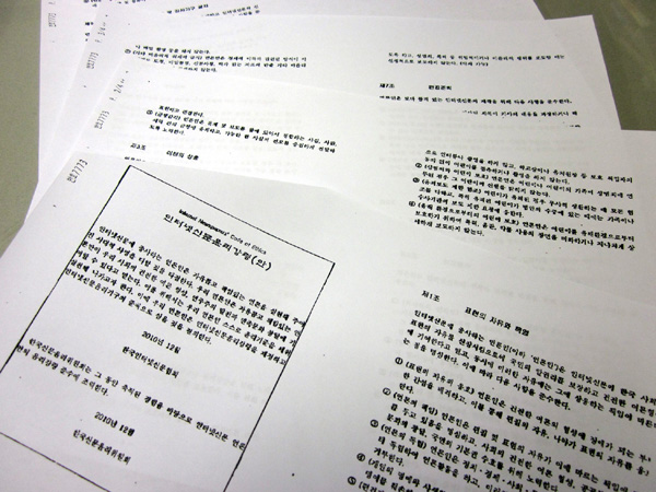 전문위원들의 ‘축조심의’를 통과한 윤리강령은 인신협 30여개 회원사를 대상으로 지난주부터 일주일간 회람 중이다. 인신협은 편집국 기자와 발행인 등의 의견을 청취해 세부 안을 조정하겠다는 계획이다.