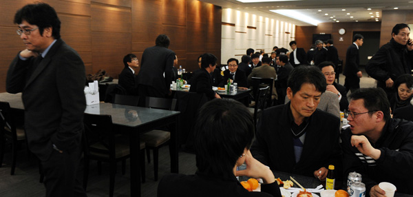 | ▲ 빈소가 마련된 신촌 세브란스병원 장례식장을 찾은 리영희 전 한양대 교수의 지인과 제자들이 조문을 마치고 삼삼오오 모여 담소를 나누고 있다.(뉴시스) | ||