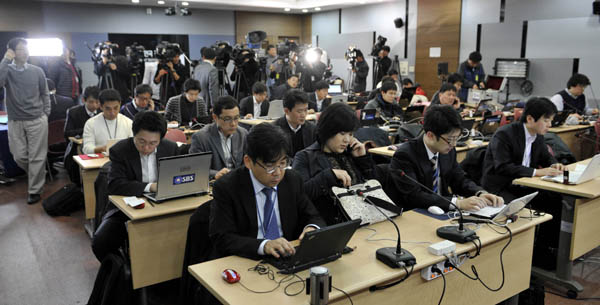 ▲ 새 방송사업자 등장에 따른 기자 대량이직 가능성이 제기되고 있다. 사진은 한 정부부처에서 기사 송고에 여념이 없는 기자들의 모습.(뉴시스) |