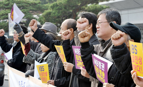 (5)방송장악 논란과 MBC· KBS 총파업이명박 대통령 대선캠프에서 활동했던 KBS 김인규 사장, 이 대통령과 오랜 친분관계를 맺어온 것으로 알려진 MBC 김재철 사장 취임으로 ‘방송장악’ 논란은 정점에 달했다. MBC노조는 김재철 사장의 퇴진을 요구하며 39일간 총파업을 벌였고, KBS노조의 노선을 비판하며 창립한 전국언론노동조합 KBS본부는 김인규 사장에 7월 한 달 동안 총파업으로 맞섰다. 그 밖에 노조원에 대한 무더기 해고·징계·인사보복 논란을 비롯해 시사고발프로그램의 폐지, PD수첩과 추적60분 ‘4대강’ 편 불방 사태로 빚어진 공정방송 논란 등 ‘방송 장악’ 시비가 끊이지 않은 한 해였다.