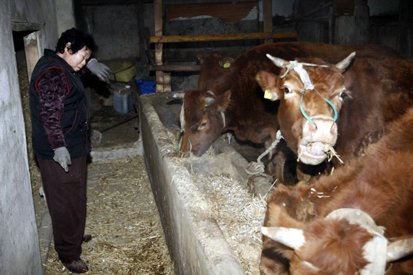 ▲ 22일 구제역이 발생한 강원 화천군 사내면 명월리의 한 주민이 이날 저녁 살처분 예정인 소에게 마지막 여물을 주다 눈물을 훔치고 있다.(연합뉴스) |