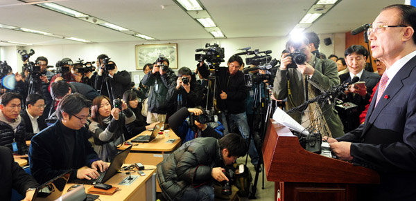 ▲ 지난달 31일 오전 서울 세종로 방송통신위원회에서 최시중 방송통신위원장이 종합편성채널과 보도전문채널 사업자 선정 결과를 발표하고 있다.(뉴시스) |