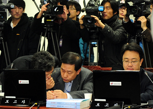 | ▲ 지난달 31일 오전 서울 세종로 방송통신위원회에서 종합편성·보도전문채널 사업자 선정을 위한 회의가 열리기 전 방통위 관계자들이 귀엣말을 나누고 있다.(뉴시스) | ||