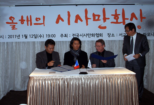 한편 시만협은 이날 오후 서울 마포구 서교호텔에서 '2010 올해의 시시만화상' 시상식을 열고 미디어오늘 이용호 화백에 '올해의 시사만화상'을 수여했다. 우수상은 권범철 노컷뉴스 화백과 컴투스 하재욱 화백에게 돌아갔다. 부산대신문 백이현 화백은 대학생부문상을 수상했다.