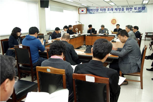 ▲ 지역신문 지원을 위한 조례 제정이 잇따라 추진되고 있다. 지난해 10월 충북민언련 주최로 충북도의회에서 열린 지역신문 지원 조례 제정을 위한 토론회 사진. (충북일보 제공) |