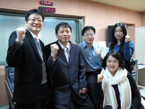 ▲ 왼쪽에서부터 김상현 보도팀장, 박영록 기자, 박찬민 기자, 지은아 기자, 송은화 기자가 스튜디오에서 포즈를 취하고 있다. |