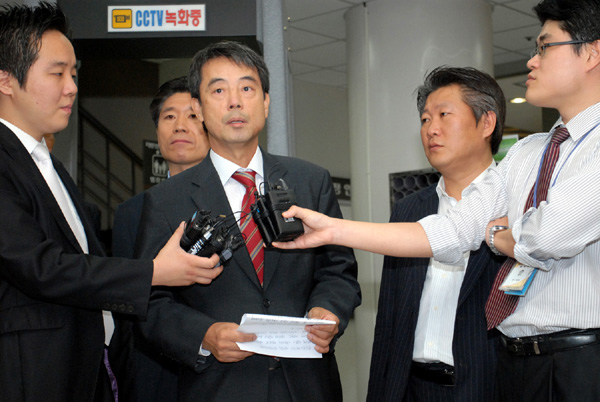 ▲ 복수종합유선방송사업자(MSO)인 씨앤앰의 최정우 전무가 지난해 9월8일 서울중앙지법 로비에서 법원 판결에 대한 케이블TV 업계의 입장을 밝히고 있다. 당시 서울지법은 KBS와 MBC, SBS 등 지상파 3사가 5개 주요 종합유선방송사업자를 상대로 낸 저작권 등 침해정지 및 예방청구 소송에서 원고 일부 승소 판결했다.(뉴시스=한국케이블TV방송협회 제공) |