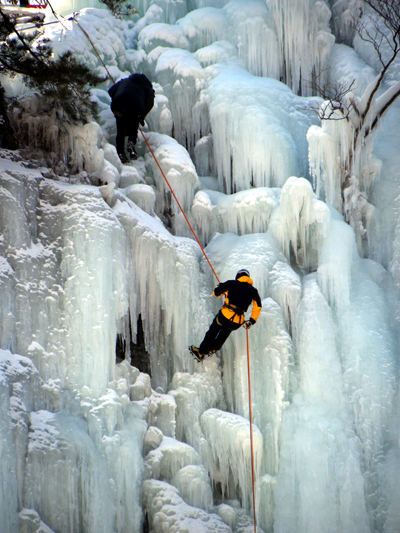 | ▲ 21일 충남 부여군 외산면 수부리 수리바위 빙벽에서 등반가들이 한파의 추위에도 아랑곳 하지 않고 빙벽을 타고 있다. (뉴시스) | ||