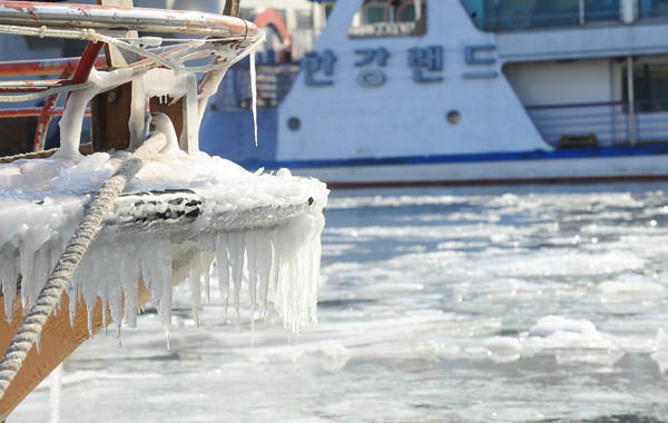 | ▲ 매서운 한파가 기승을 부리는 18일 오후 서울 영등포구 여의도 선착장에 정박해 있는 유람선에 고드름이 얼어 있다.(뉴시스) | ||