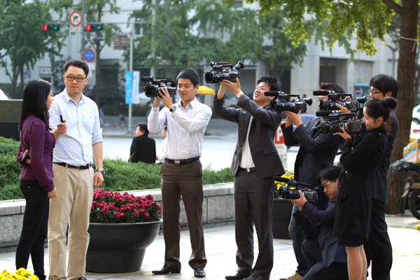 ▲ 기자들이 신문과 방송을 넘나드는 취재력과 보도제작 기술을 갖춰야 하는 시대가 다가오고 있다. 지난해 10월 한국언론진흥재단이 주관한 ‘멀티형 기자과정’에 참여한 중앙일보 기자들이 리포팅 장면을 촬영하고 있다. (한국언론진흥재단 제공) |