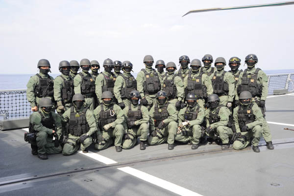 | ▲ '작전 성공' 기념사진으로 둔갑한 UDT 대원 사진. 해군은 24일 각 언론사에 삼호 주얼리호 피랍 선원 구출 작전을 성공리에 마친 청해부대 검문검색팀이라며 사진을 제공했다. 그러나 이 사진은 작전 직후가 아닌, 지난해 12월에 촬영된 것으로 밝혀졌다.(뉴시스=해군본부 제공) | ||