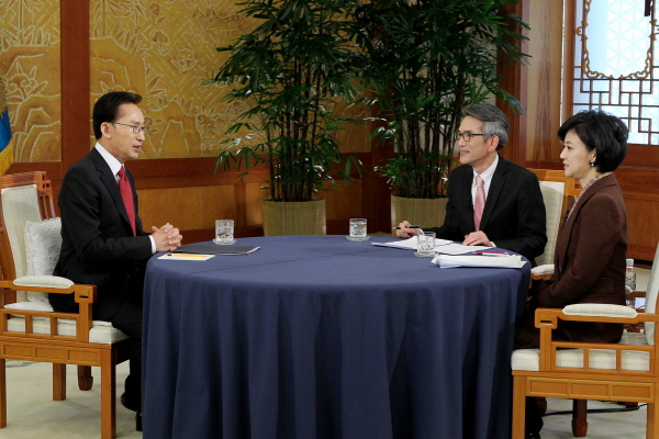 | ▲ 이명박 대통령이 1일 오전 청와대에서 2011 신년방송좌담회-대통령과의 대화를 생방송으로 갖고 있다. (사진=뉴시스.청와대 제공) | ||