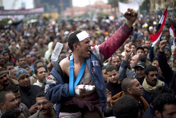 | ▲ 5일 이집트 카이로 타흐리르 광장에서 반정부 시위대가 호스니 무바라크 대통령의 퇴진을 외치고 있다. (카이로(이집트)=AP/뉴시스) | ||