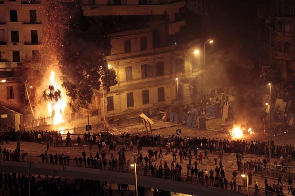 | ▲ 3일 이집트 카이로 타흐리르 광장에서 호스니 무바라크 대통령의 퇴진을 요구하는 반정부 시위대와 무바라크 대통령을 지지하는 친정부 시위대가 유혈충돌을 벌이고 있다. (카이로(이집트)=AP/뉴시스) | ||