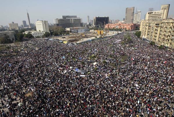 | ▲ 1일(현지시간) 이집트 수도 카이로의 자유의 광장에서 수많은 시위대가 모여 호스니 무바라크 대통령의 축출을 외치며 시위를 벌이고 있다. (카이로(이집트)=AP/뉴시스) | ||