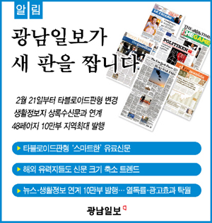 광주·전남지역 일간신문 ‘광남일보’가 21일부터 신문 형태를 기존 대판에서 ‘타블로이드 판’으로 바꿔 발행했다.