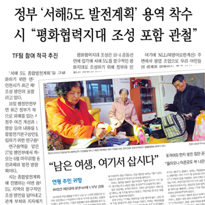 경인일보는 16일부터 ‘연평주민 귀향’이란 시리즈를 내보내고 있다. 16일 ‘80일간 피란살이 끝낸 60대 노부부 감회’, 17일 ‘복귀 노부부 겨울나기 근심,’ 18일 ‘굴캐러 갯벌로…다시 찾은 활기’ 등을 1·3·23면을 통해 소개했다.