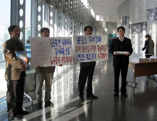 또 SBS본부는 주총장에서 내부 공개발언을 통해 감사위원 선임 문제 이외에도 SBS 독립경영 확보 및 지주회사 터널링 문제, 콘텐츠 요율 인상 및 해외 판권 회수 문제 등을 지적하고 SBS미디어홀딩스 하금열 대표이사 사장의 이사선임을 반대했다.