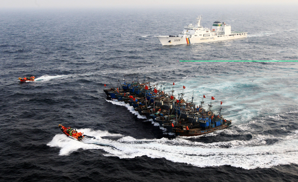 | ▲ spot news 최우수상 '불법조업 중국어선들-일렬로 묶은 채 단속 저항'(동아일보 박영철 기자). (뉴시스) | ||