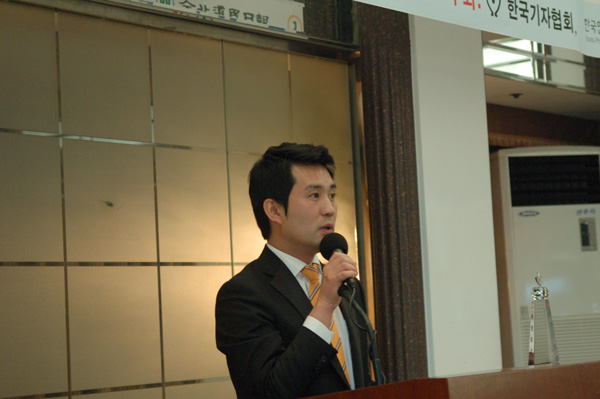 | ▲ 수상소감을 말하는 대전MBC 조형찬 기자. | ||