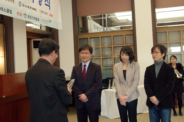 | ▲ 자사 동료의 수상 소식 등 한국기자상 시상식을 취재하고 있는 취재진들. | ||
