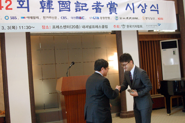 | ▲ 한겨레 박종식 기자의 수상 장면. | ||