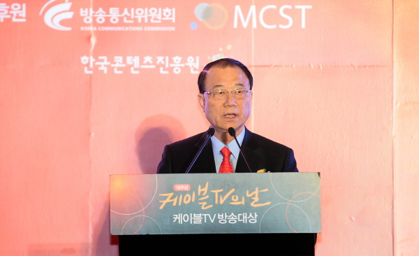 ▲ 최시중 방송통신위원장이 3일 오후 서울 중구 밀레니엄 힐튼호텔에서 열린 제16주년 케이블TV의 날 기념식에서 축사를 하고 있다.(뉴시스) |
