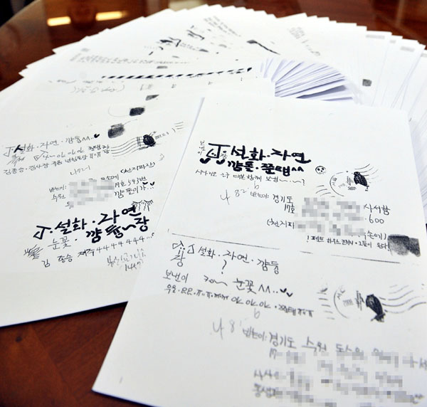 ▲ 탤런트 고 장자연씨가 자살 직전까지 심경을 적은 편지가 8일 공개됐다. 이 편지는 2003년부터 교도소에 수감중인 J(31)가 장자연에게서 받은 것으로 알려졌다.(뉴시스) |