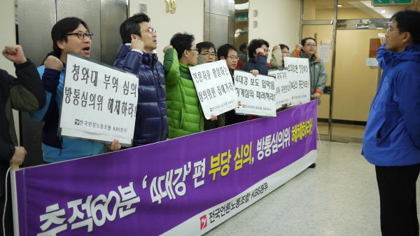 전국언론노조 KBS본부는 서울 목동 방송통신심의위원회를 항의 방문해 ‘추적60분 탄압’을 중단하라고 9일 요구했다.