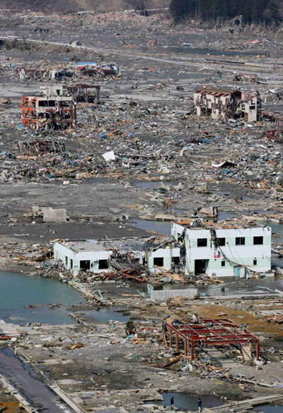 | ▲ 강진 발생 사흘째인 13일 미야기현 미나미산리쿠 시내가 폐허가 된 채 남아 있다.(미나미산리쿠(일본)=AP/뉴시스) | ||
